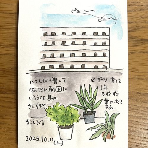 うちのベランダからは隣のマンションがずらっと見えるだけの興醒めな景色だけど、どこからか決してスズメじゃない知らない鳥のさえずりが 今日は一際響いていた。