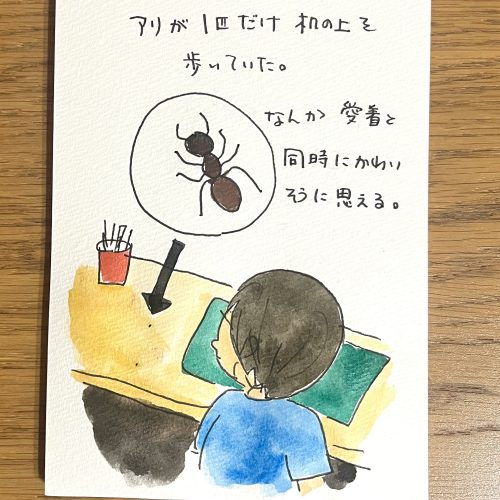 きっとゴミ拾いのゴミにくっついてきてしまったんだろう。きっと前の公園出身のアリに違いない。妙に可哀想に思うので 公園まで連れて行こうとビンを探しに行って戻ったらいなかった。